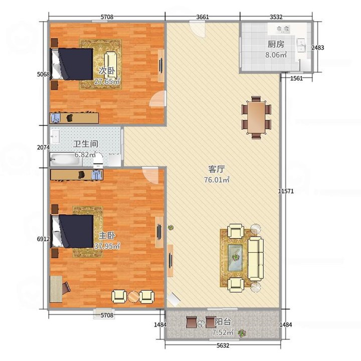 ,两室两厅一厨