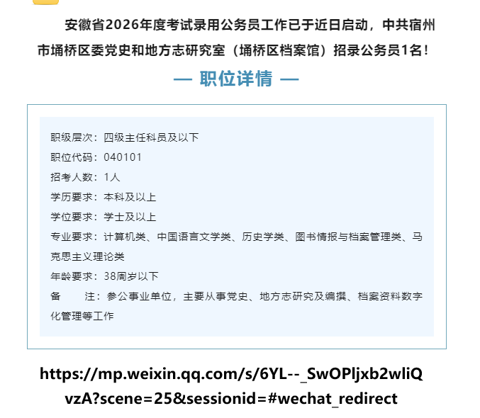 【有编】埇桥区档案馆,年底放出1公务员岗位~