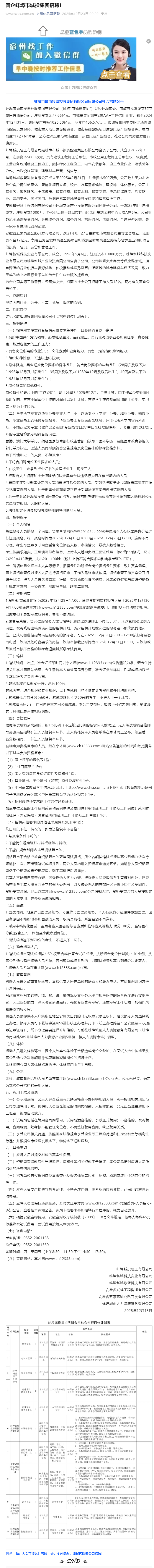 蚌埠市城市投资控股集团有限公司所属公司社会招聘公告