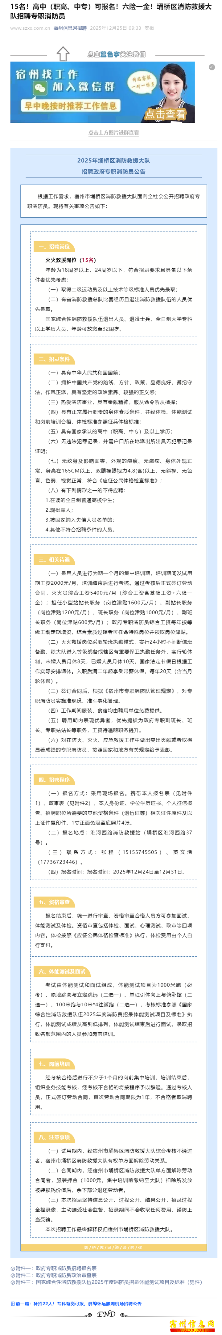 15名!高中(15名职高、中专)可职高、报名!六险一金报名!!埇桥区消防救!埇桥援大队招聘专职消防员
