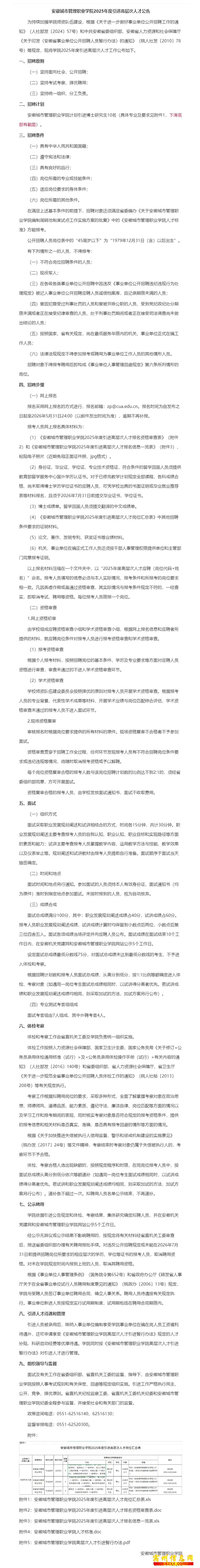 【有编】正在报名~2025年安徽202城市管理职业学城市管院引进高层次人才10人公告