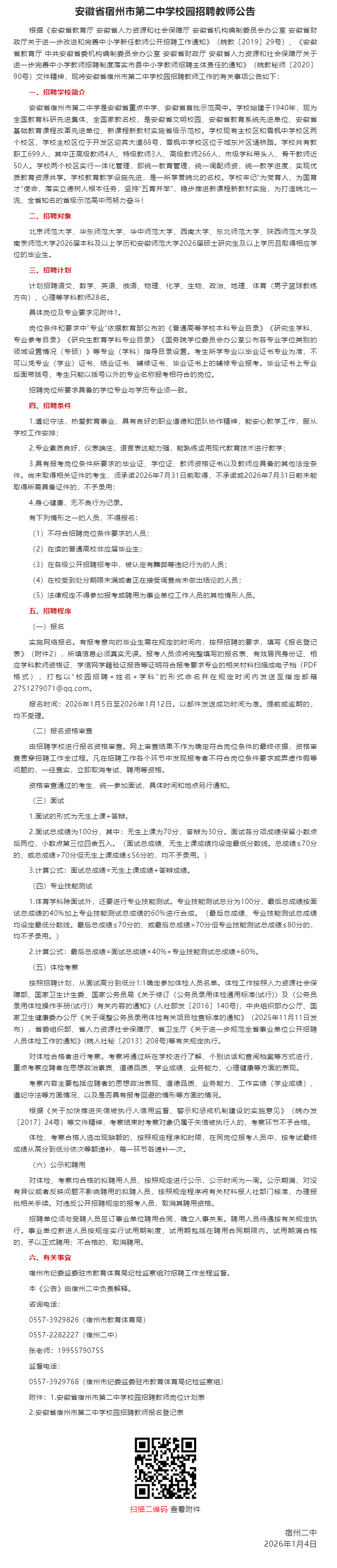 【有编】!宿州市第二中学招28人