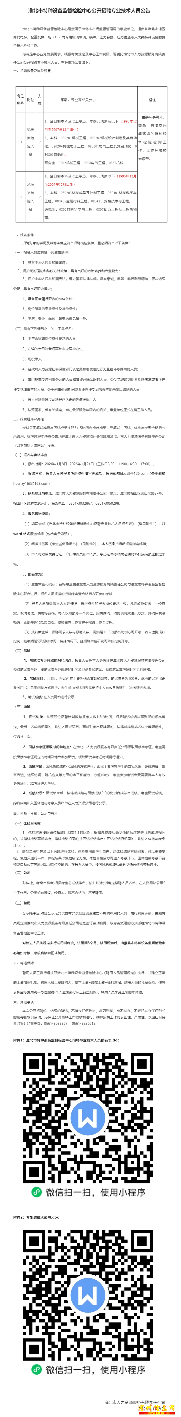 【事业单位】能吃苦~淮北市特种设备监督检验中心公开招聘